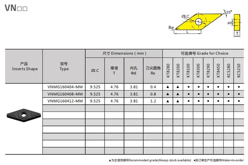 TNMG160408 che è Un tipo di inserti di giro generali, esso è Molto popolare nei nostri clienti dappertutto.